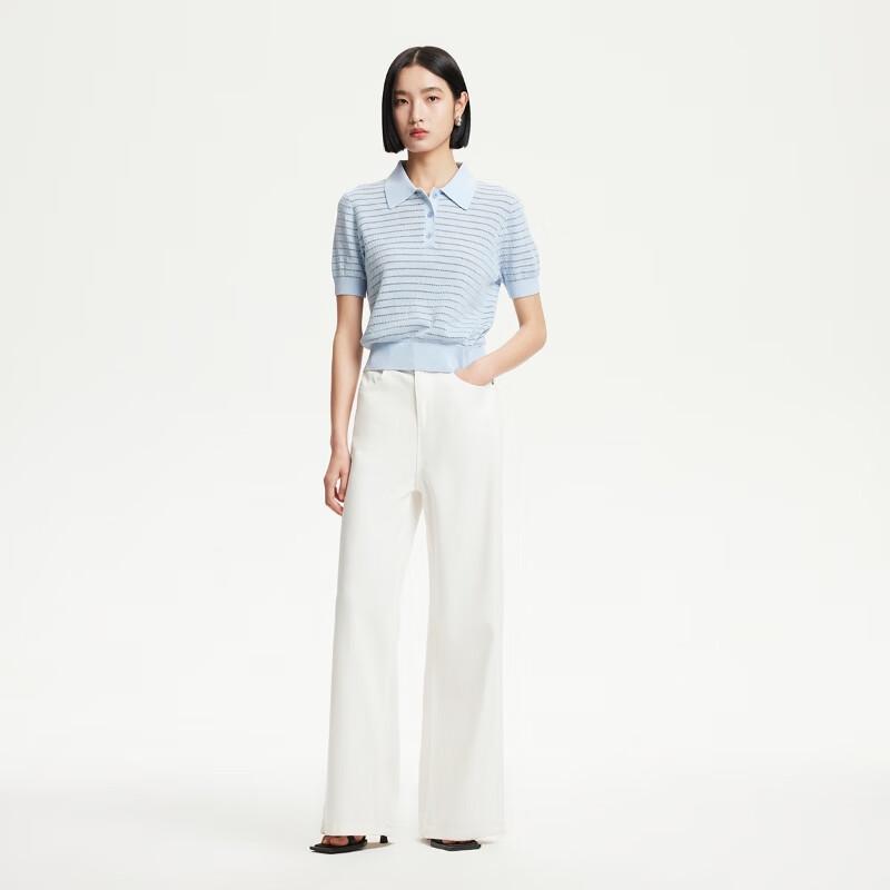 VEROMODA Women's Lyocell Blend Short Sleeve Polo Knit Top