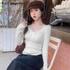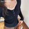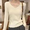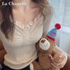 La Chapelle Damen Strick V-Ausschnitt Basisschicht Top mit Spitzenbesatz