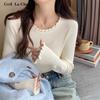 La Chapelle Damen Strickoberteil mit Rüschenkante und langen Ärmeln