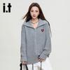Izzue Damen Retro Strickjacke mit Rüschenkragen und Reißverschluss