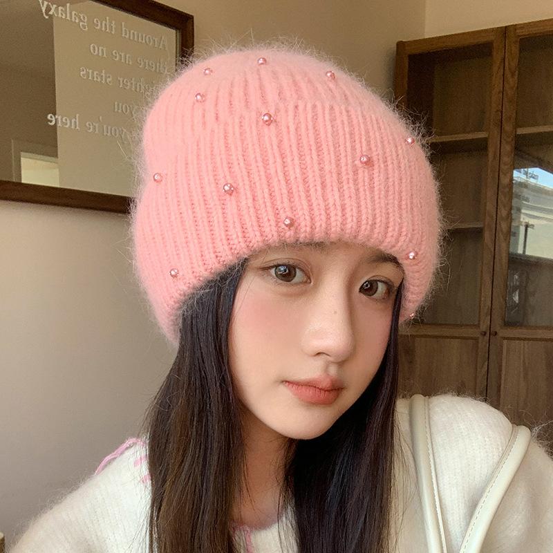 Neuer Perlen-Kaninchenhaar-Strickhut Damen Winter Outdoor Warm Mode Ohrenschützer Wollmütze