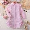 Mädchenkleid Kinderbekleidung Herbst Neu Lässig Lang Gestreift Langarm Taillenbetontes Hemdkleid