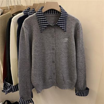 Hemdkragen Strickpullover Damen Strickjacke Herbst Neues Gefühl Temperament Fake Zwei Pullover Kurzer Mantel Frühling und Herbst