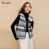 Women's Contrast Stripe Plush V-Neck Tie-Waist Vest