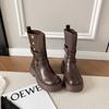 Kurzstiefel mit dicker Sohle, mittelhohem Schaft, Maillard-Farbe, Damen, Herbst/Winter 2025, neuer britischer Stil, retro braun, dicker Absatz, zwei Tragevarianten, Martin-Stiefel