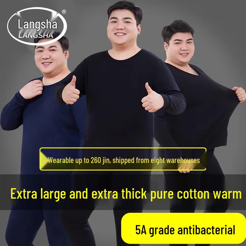 Langsha Men's Plus Size 100% Cotton Thermal Underwear Set