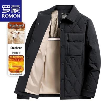 Romon Men's Thickened Mid-Length Double-Sided Wool Coat with 90% Duck Down Liner