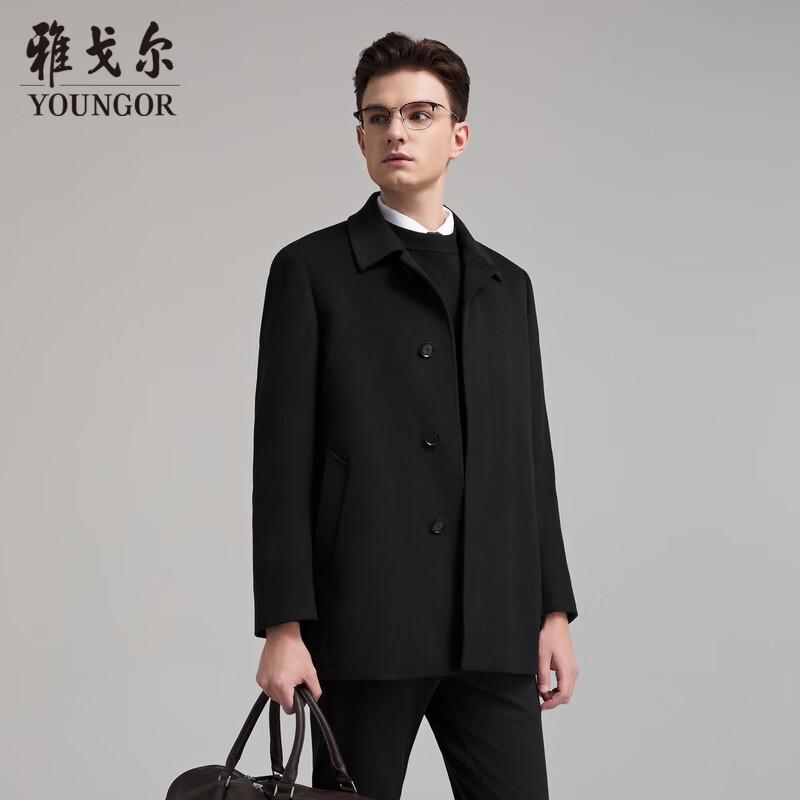 YOUNGOR Premium Men's Wool Cashmere Down Lined Overcoat