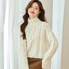 Srcr Women's Short High-Neck Cable Knit Wool Blend Sweater