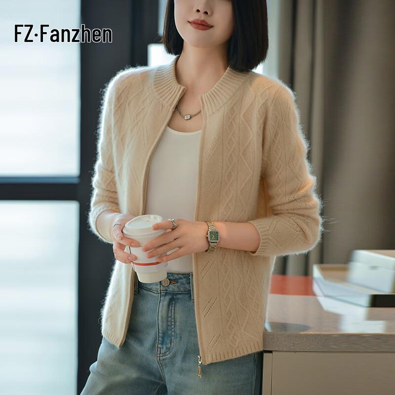 Fanzhen Women's 100% Wool Thick Knit Stand Collar Cardigan