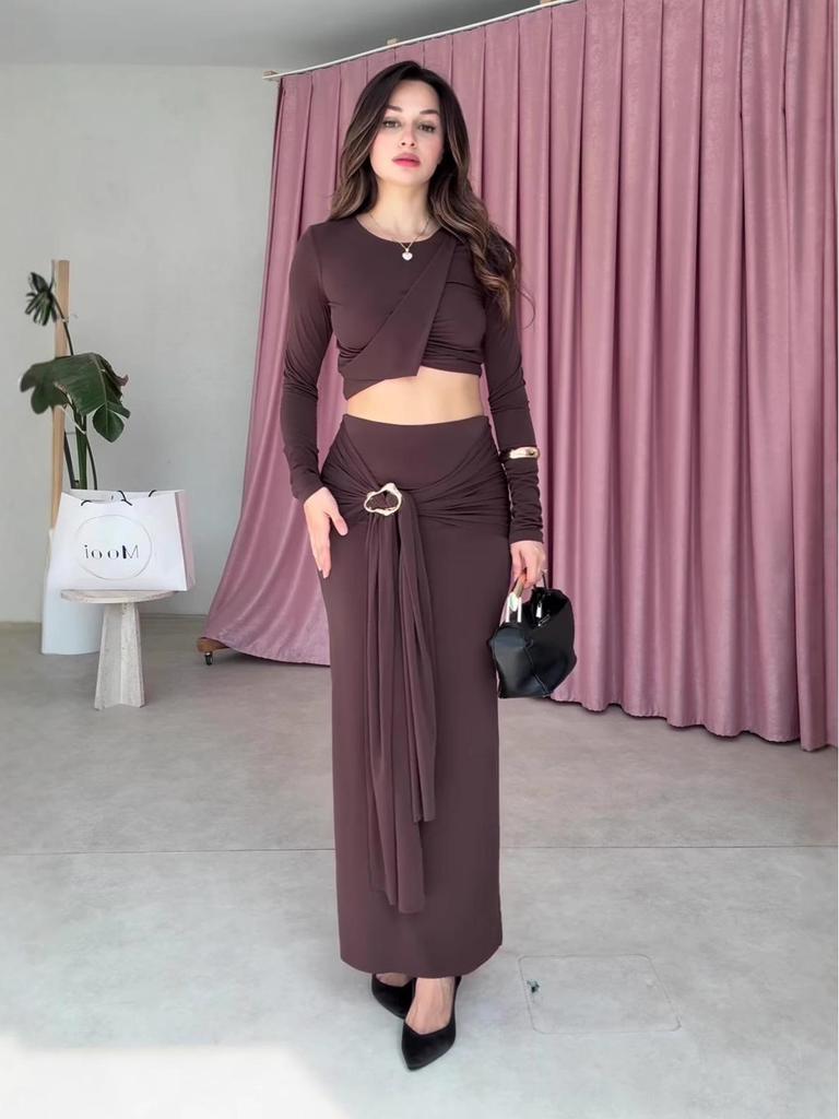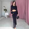 Introducing the epitome of elegance meets comfort with this solid pattern, 2025 autumn women's attire. This set features a round neck long sleeve top paired with a sexy long dress, both crafted from high-quality polyester that ensures durability and comfort. The light and breathable material makes it an ideal choice for cool autumn days. Boasting a sportive style, this versatile ensemble seamlessly transitions from a casual day out to an evening gathering, offering chic sophistication with ease. Perfect for those who value both style and substance in their wardrobe.