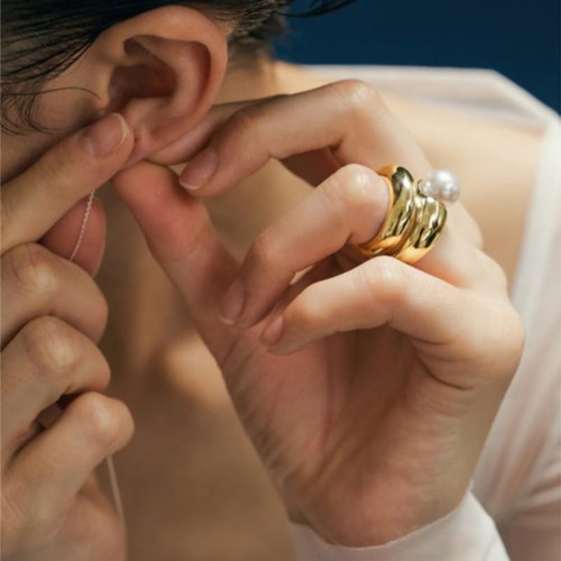 MOI studio # Moi 4st Gold Pearl Ring SET_05