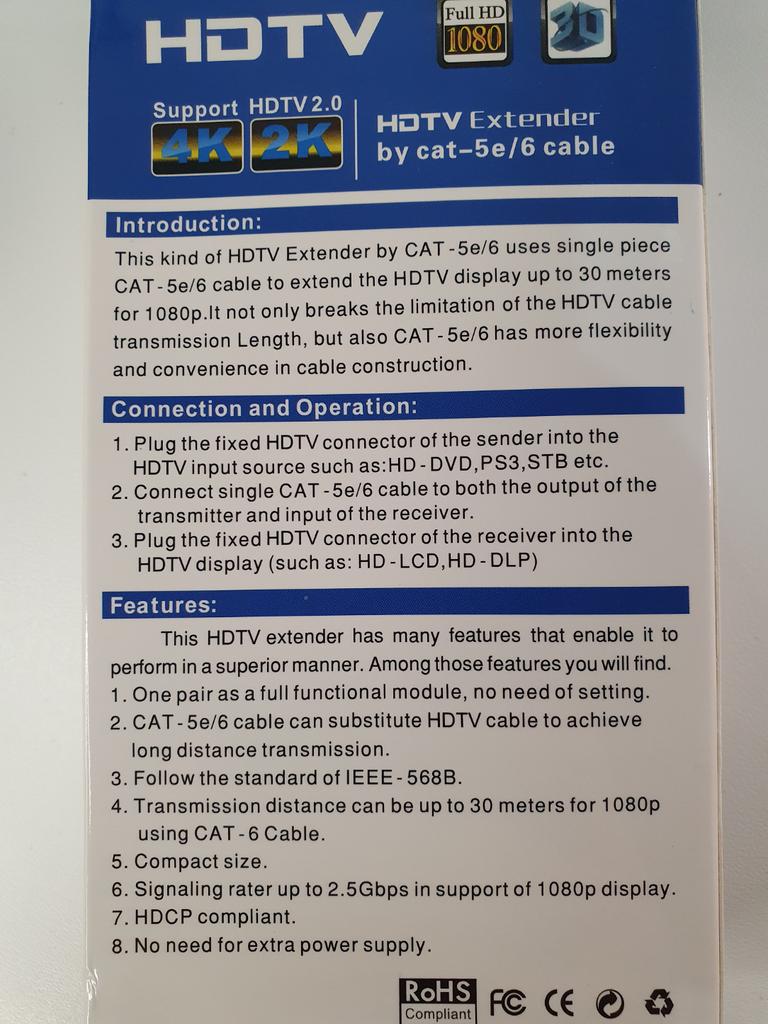 Es ist ein 4k-Extender, der mit HDMI zu RJ45-Port kompatibel ist. Ich empfehle ihn 👍👍👍👌👌👌. 📦 Paketinhalt: 4k-Extender kompatibel mit HDMI. Ein Cat 6 Ethernet-Kabel. 👍Profis: Lieferung nach Spanien in 24 Tagen. ✈️ Super gut verpackt für die Reise. Ausgezeichnete Präsentation in seiner Box Qualität entsprechend dem Produkt. 4k Extender kompatibel mit HDMI zu RJ45 Port. Der Verkäufer legt ein Cat 6 Ethernet-Kabel bei. Perfekt für Computer, Multimedia-Center, Projekte, DVD, Fernsehen, Verstärker usw... 👎Nachteile: nichts, worüber man nach Hause schreiben könnte. .