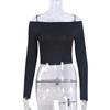 European & American Style Autumn/Winter Sexy One-Shoulder Backless Slim-Fit Long-Sleeve Crop Top for Women