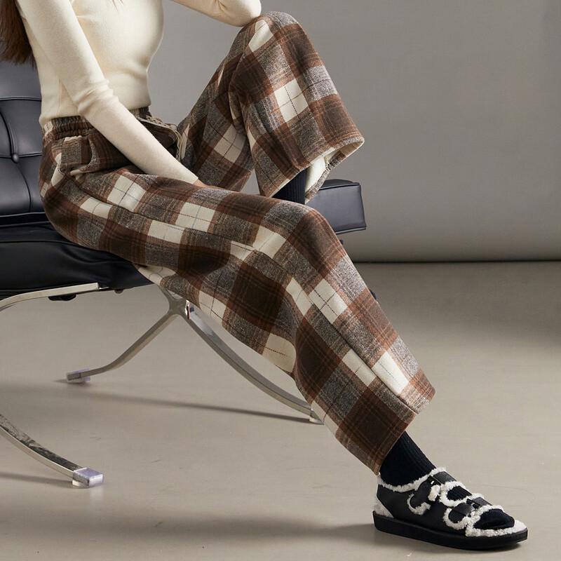 Demana Women's Fleece-Lined Plaid Wide-Leg Pants
