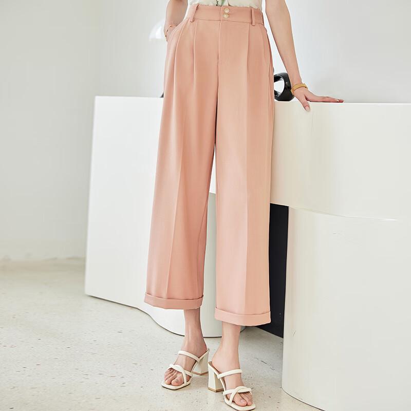 VICTORIA&VERA Women's Summer High-Waist Straight Leg Cropped Pants