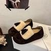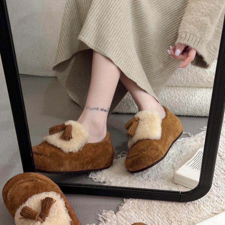 Koreanische Version Herbst und Winter neue Schleife Lammwollschuhe Damen tragen Samt flache Slipper vielseitige Doudou-Schuhe