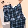 Damen High-Waist Locker Kariert Weitbein Freizeithose
