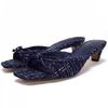 Neue Schleifen Satin Pantoletten Sandalen Slip-On Einfarbig Modisch Elegant Prägnant Süß Party Damen Schuhe Neu Eckige Zehenpartie Dünne Absätze
