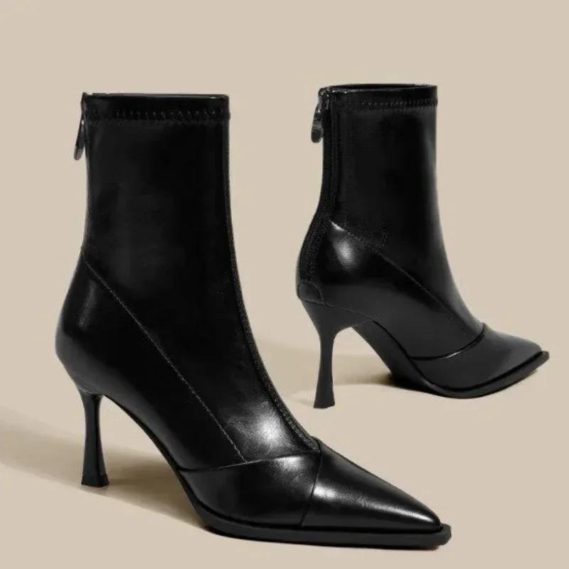 Herbst Winter Damen High Heels Sexy Spitzschuh Damen Stiefeletten Elegant Schlicht Stilettos Übergröße 35-40