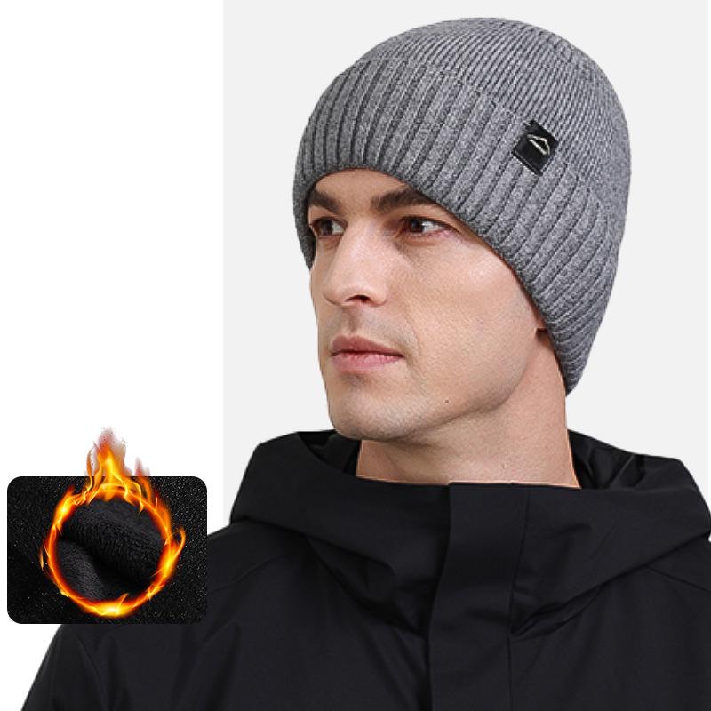Strickmütze Herren Herbst Winter Samt Dick Ohrenschutz Warme Mütze Hochelastisch Einfarbig Wollmütze