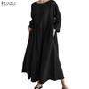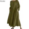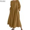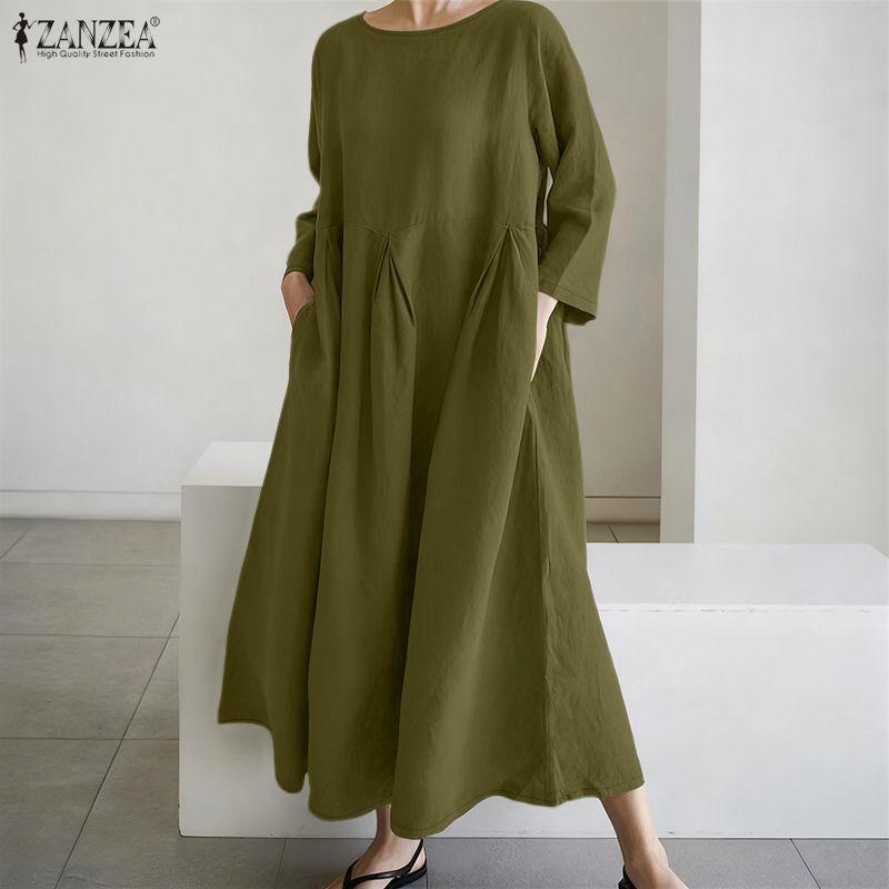 ZANZEA Damen Lässig Rundhals Achtelarm Locker Langes Kleid