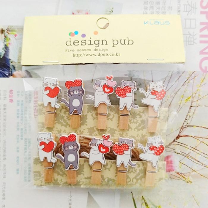 Cartoon Katze Liebe Blumenladen Kartenhalter Kindergarten Foto Aufhängen Kleine Holzklemme
