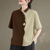 ZANZEA Damen Lässig Umlegekragen Sommer Kurzarm Patchwork Bluse