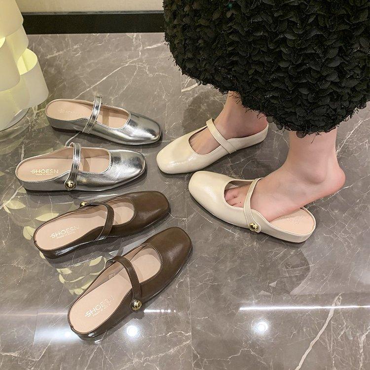 Französische Taschenkopf-Slipper Damen tragen Silber Einzelne Schuhe draußen Sommer, faule Leute treten kleine duftende Wind flache Sohle coole Slipper Damenmode