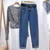 Damen High Waist Jeans Frühling und Herbst Locker Übergröße Schlankmachend Gerades Bein Hosen Haremshose
