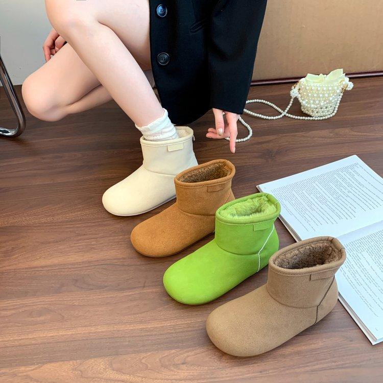 Retro braune Schneestiefel Damen 2025 neu Winter Ein-Pedal rutschfest verdickt warm Damen Schuhe hässlich süße Baumwollschuhe
