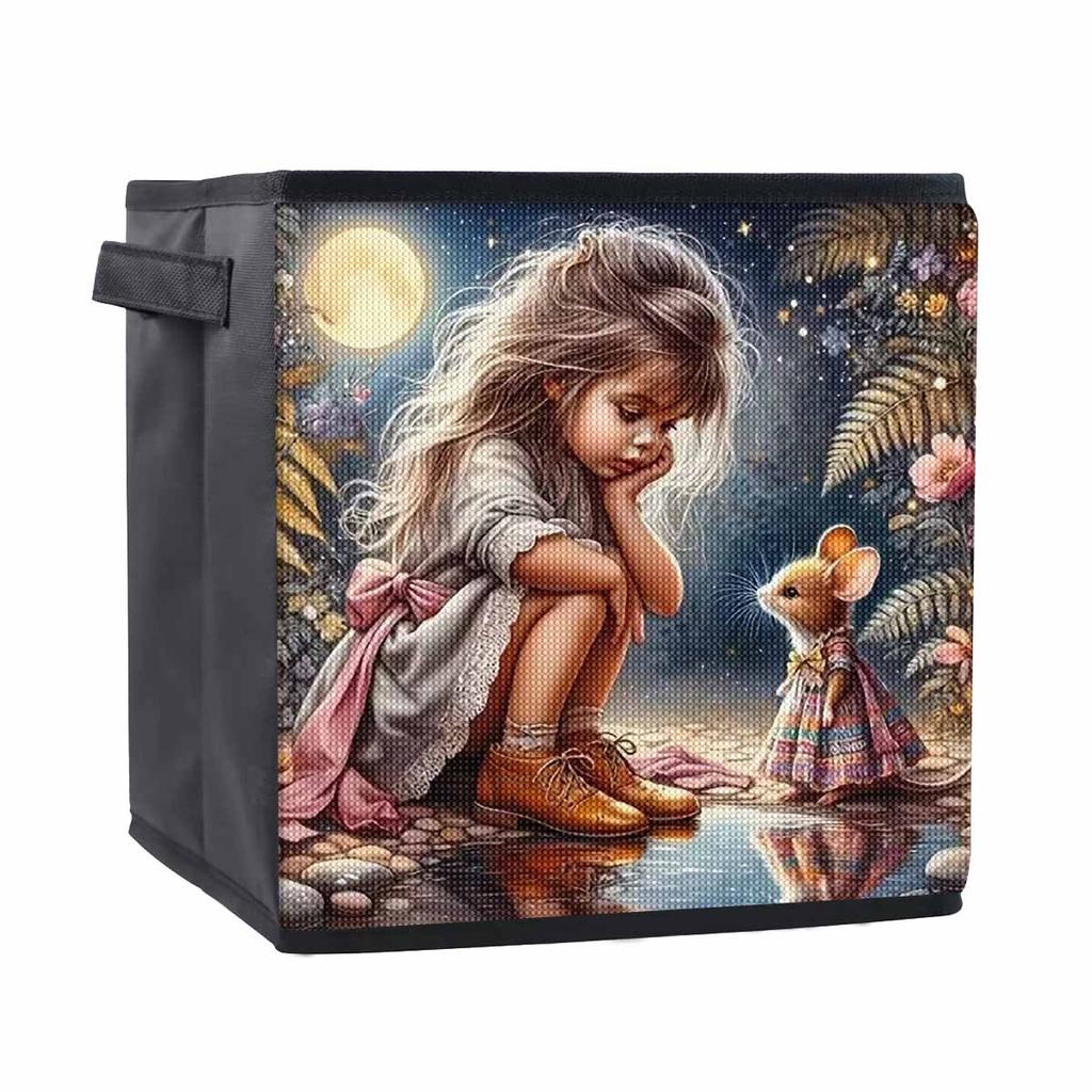 Das Mädchen und die Maus 5D Diamantmalerei Aufbewahrungskorb Voll Runde Bohrer Mosaik Diamantstickerei Kreuzstichsets Heimdeko Heimdeko