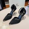 Schwarze hohle High Heels Damen dünne Absätze spitz zulaufend Französisches Temperament Designgefühl Nische Ein-Wort-Schnalle mit Taschenkopf Damen Sandalen