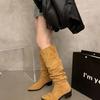 Wildleder Western-Mittelstiefel mit hohen Absätzen Damenschuhe neuer Herbst und Winter Samt spitz zulaufend Flor langer Schaft Ritterstiefel