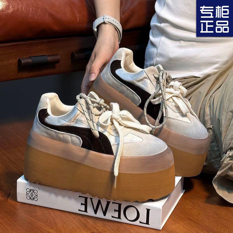 Retro polierte Muffin-Plateauschuhe deutsche Trainingsschuhe Damen neue vielseitige kleine höhenerhöhende lässige Board-Schuhe