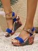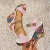 Große Größe Ethnischer Wind Schrägabsatz Fischmaul Wortgürtel Sandalen Sommer Neu Hohlschnalle Gürtel Damenschuhe