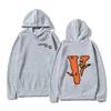 Autumn and Winter Men's Loose Big V Printed Hoodie Casual Solid Color Warm Fleece Hooded Sweatshirt Autumn and Winter Top