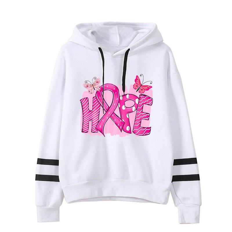 Neue Brustkrebs-Print-Hoodies Damen Frühling Herbst Mode Pullover Damen Einfarbige Kapuzenpullover Langarm Sweatshirts