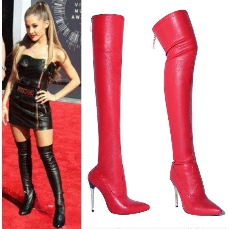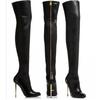 Schwarze Overknee-Stiefel Stiletto High Heels 11 cm Club Party Slim Leg Stiefel Übergröße 43 Wasserdichte Persönlichkeitsstiefel