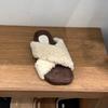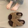 Aphixta Neue Warme Winterfleeces Fellige Damen Hausschuhe Überkreuzriemen Eckige Zehenpartie Damenschuhe Flacher Absatz Haar-Pantoletten Schuhe