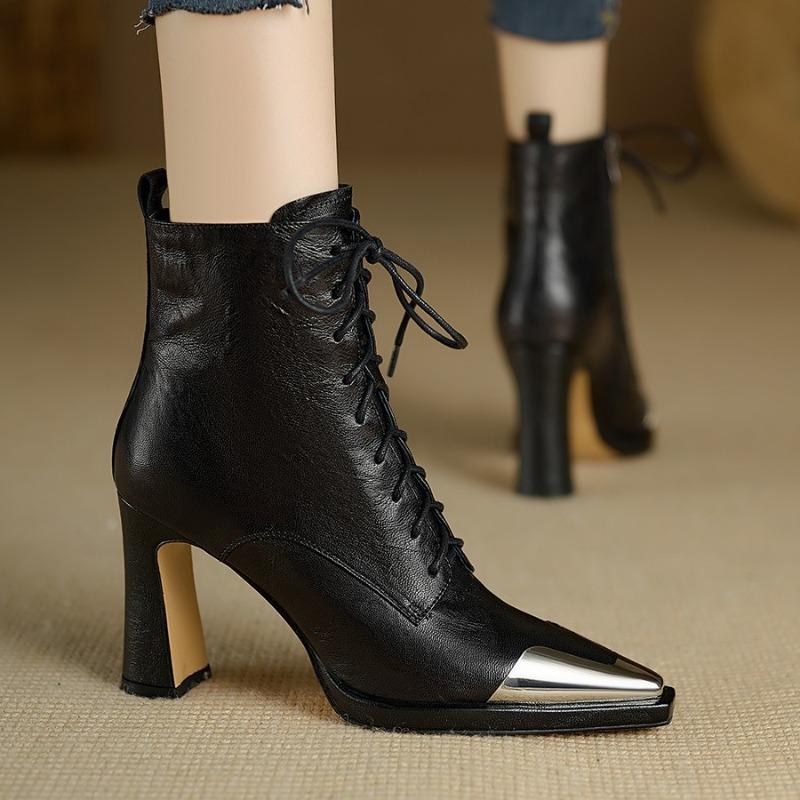 Comemore Spitzschuh Damen Stiefeletten Sexy Hohe Absätze Lederschuhe 2025 Trend Herbststiefel Schnürung Goth Botas Mujer
