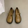 Schuhe für Damen Britischer kleiner Lederschuh für Damen Vintage runde Zehenpartie niedriger Absatz Damenschuh lässiger Loafer Schule Einzelner Schuh