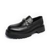British Style Metal Buckle Design Loafers Handmade Casual Leather Footwear Male Business Outdoor Soft Middle Heeled Leather Shoe