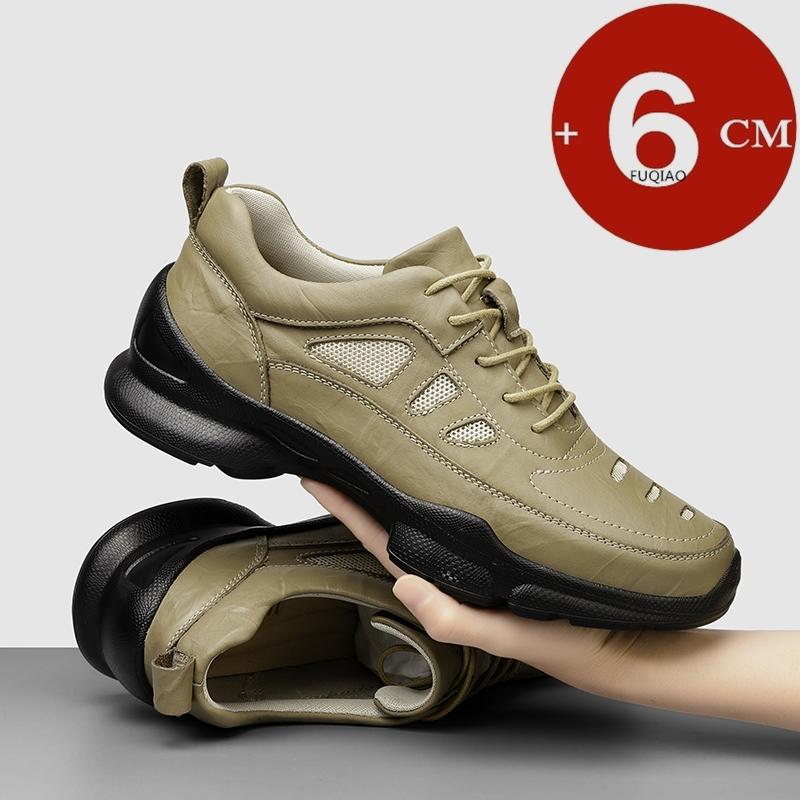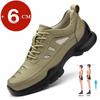 Echtes Rindsleder Herren Outdoor Wanderschuhe mit Absatz Verschleißfest Rutschfest Leicht Atmungsaktiv 6cm Höhenerhöhende Sneaker