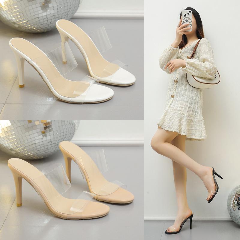 Einwort-transparente High-Heel-Sandalen Mädchen 2025 neu Übergröße Sommer Nude Stiletto Feenwind Nude Coole Pantoletten