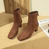 Retro Wildleder Square Toe High Heel Kurze Stiefeletten Damenschuhe Frühling und Herbst 2025 Neue Koreanische Kleine Stiefeletten Martin Boots