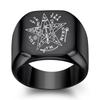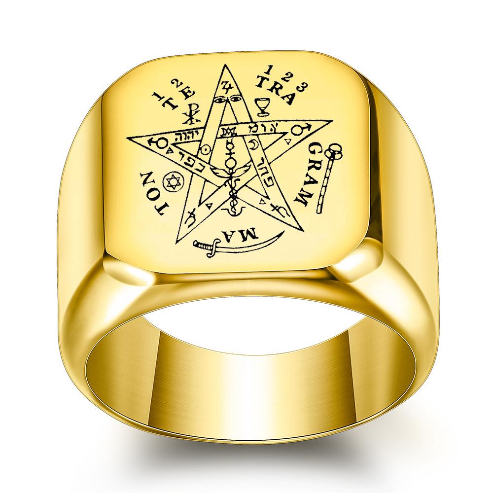 Einzigartiger Buchstaben Titanstahlring für Herren Vintage Quadratisch 18MM Glatt Trendig Männlich Fünfzackiger Stern Ring