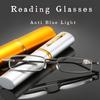 Neue tragbare faltbare Lesebrille mit Metallbox Modische dehnbare Brille Anti-Blaulicht Altersweitsichtigkeit Brille