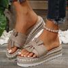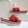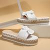 Außenhandel große Größe dicksohlige Hausschuhe Damen 2025 neue Schleife Stroh gewebt Absatz Absatz erhöhende Hausschuhe