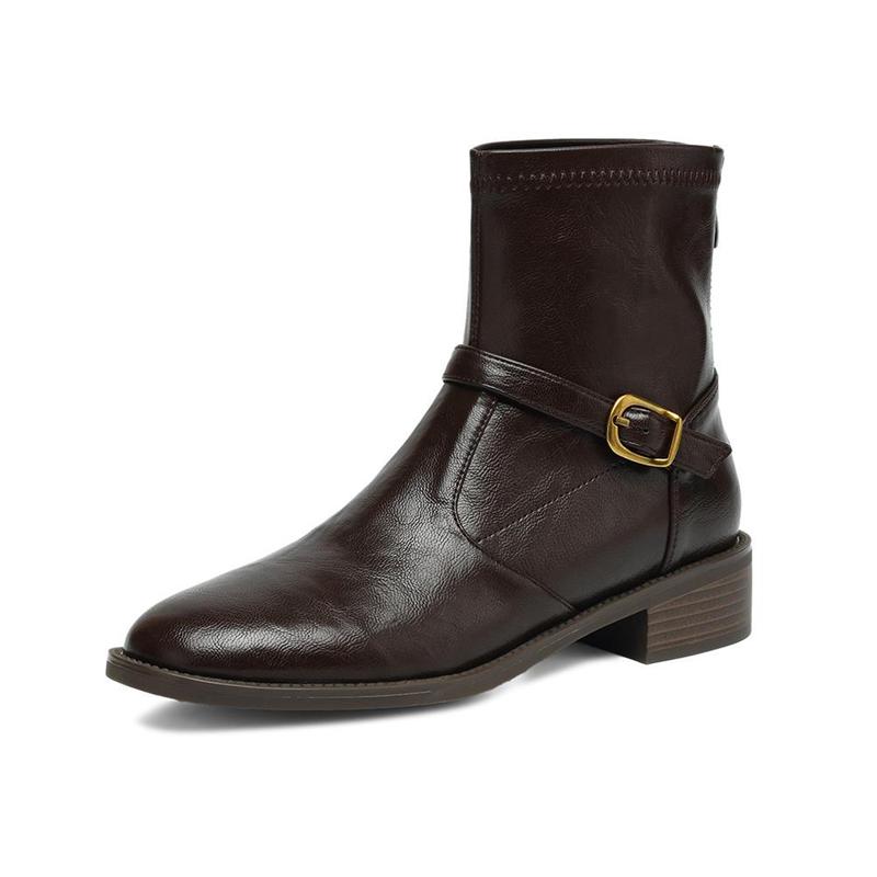 Krazing Pot Microfiber Winter Round Toe Western Boots Med Heels Zipper Women Metal Buckle British School Ankle Boots